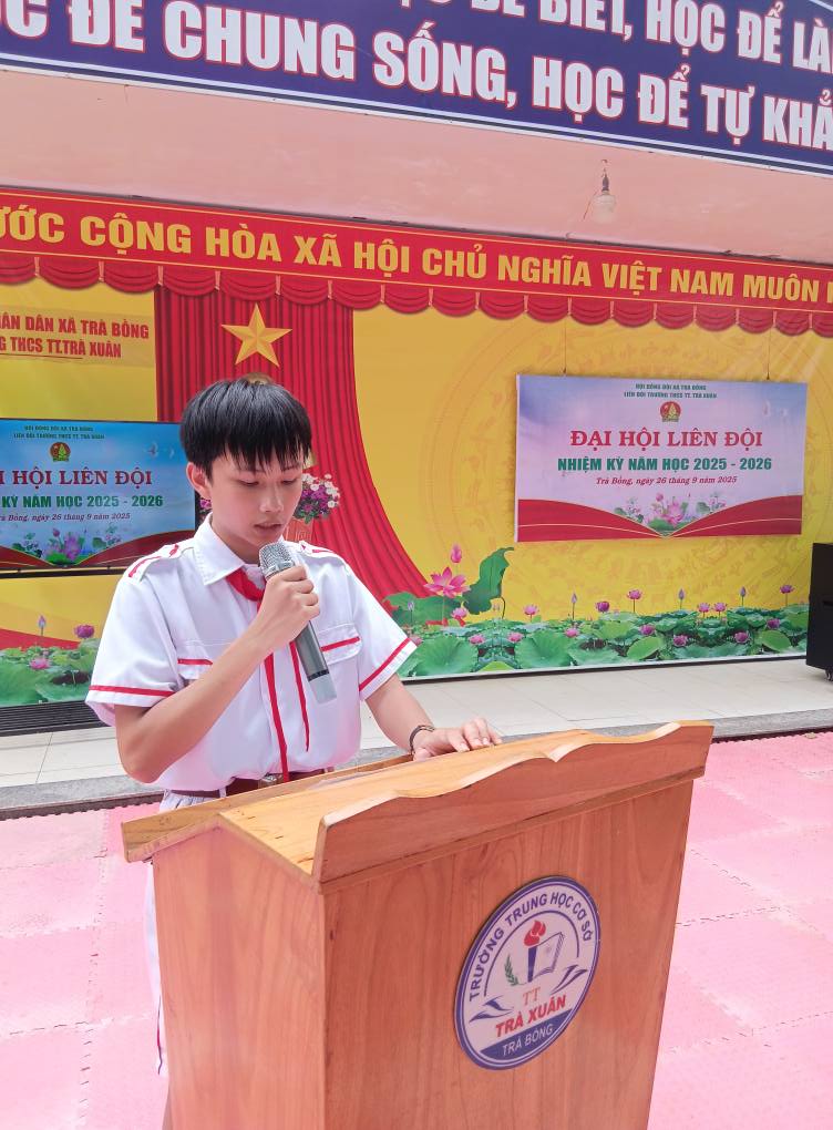 Chiều ngày 26/9/2025, Liên đội trường THCS thị trấn Trà Xuân đã tiến hành tổ chức đại hội Liên đội nhiệm kỳ năm học 2025 – 2026.
