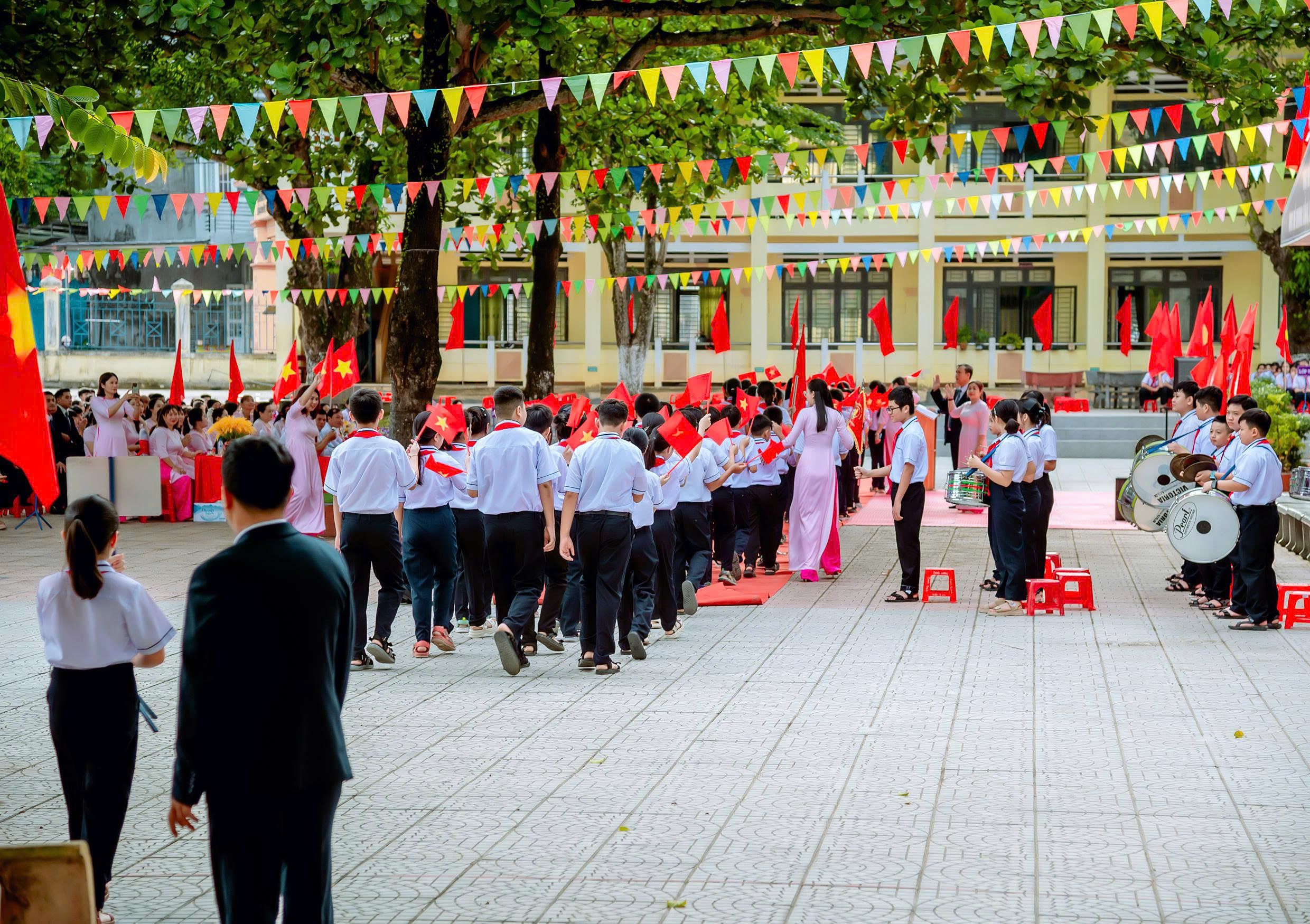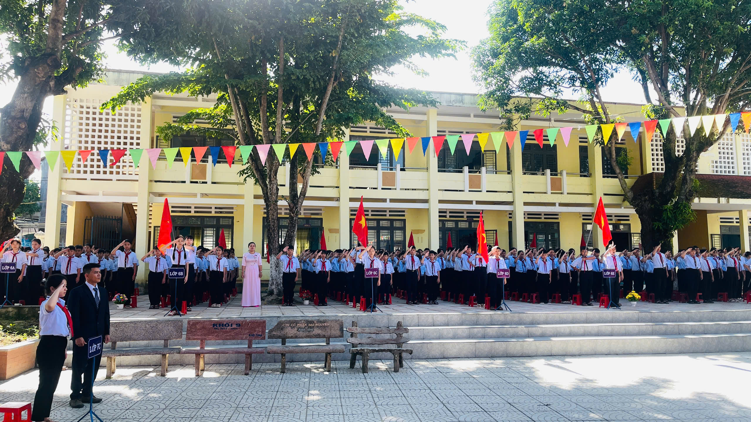 Trước khi bước vào buổi lễ chung của cả nước, Nhà trường tổ chức các hoạt động chào mừng năm học mới như đón học sinh đầu cấp, văn nghệ chào mừng, lãnh đạo Đảng, chính quyền địa phương trao quà cho các đơn vị trường học.