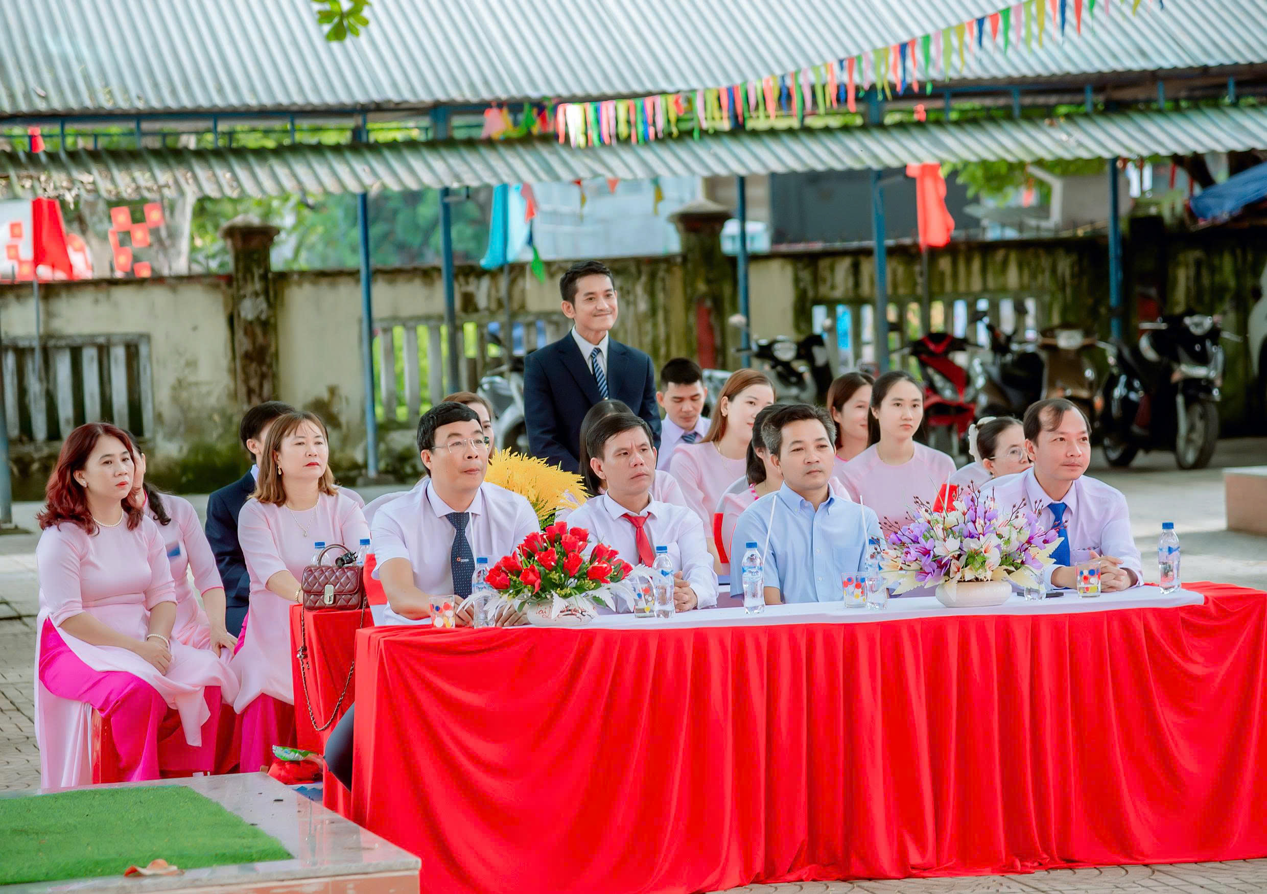 Tham dự buổi lễ có sự hiện diện của các đồng chí lãnh đạo địa phương, các Ban ngành, Ban đại diện cha mẹ học sinh, cùng toàn thể cán bộ, giáo viên, nhân viên và học sinh nhà trường.