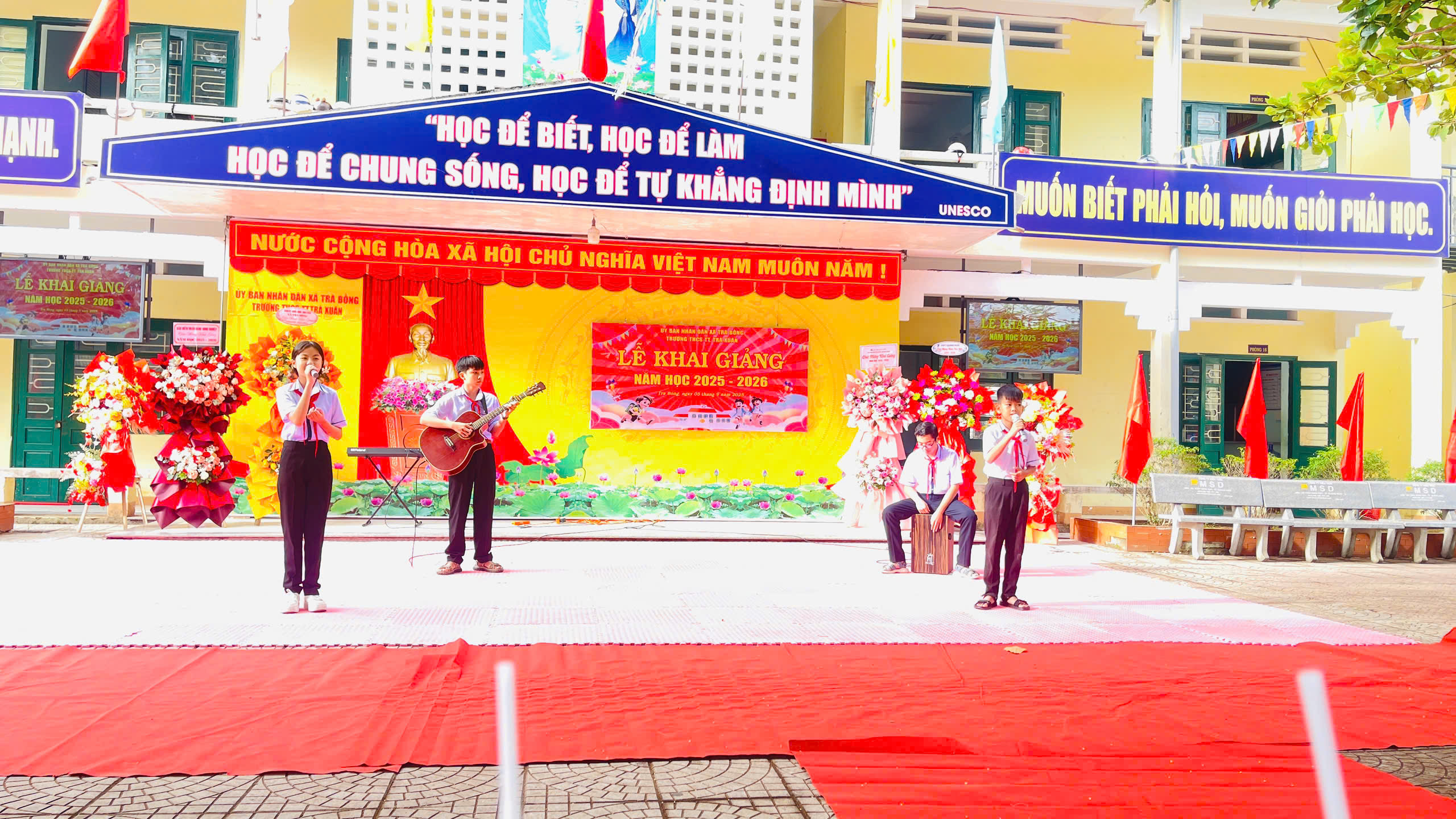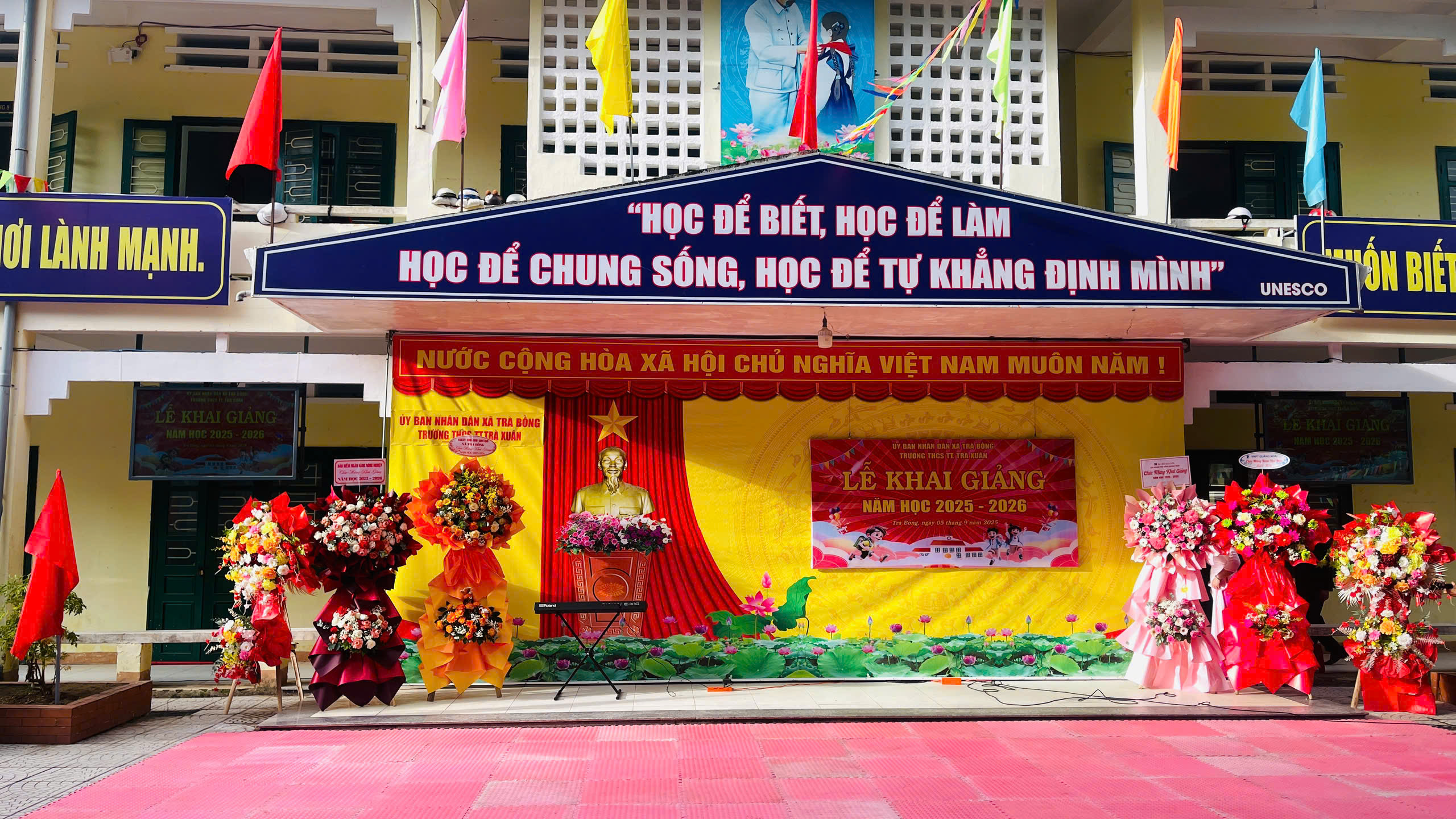 Trong không khí hân hoan của những ngày mùa thu lịch sử, cùng với hàng triệu học sinh, sinh viên cả nước, sáng ngày 5 tháng 9 năm 2025, trường THCS thị trấn Trà Xuân long trọng tổ chức Lễ Khai giảng năm học mới 2025 – 2026.
